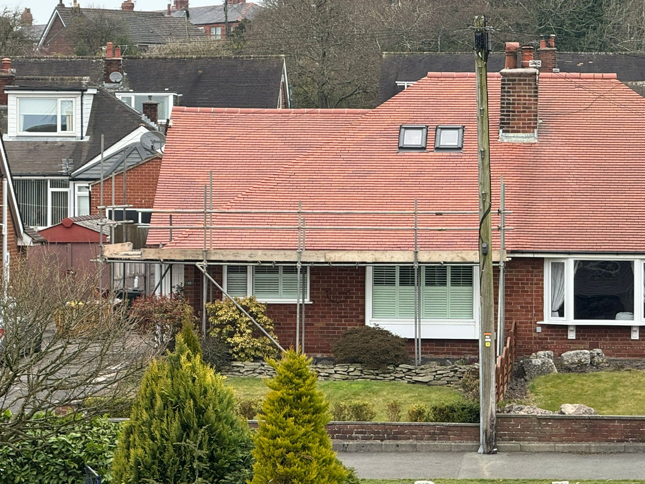 Old rotten roof completely rebuilt and all joinery work done by us to make good! Longridge