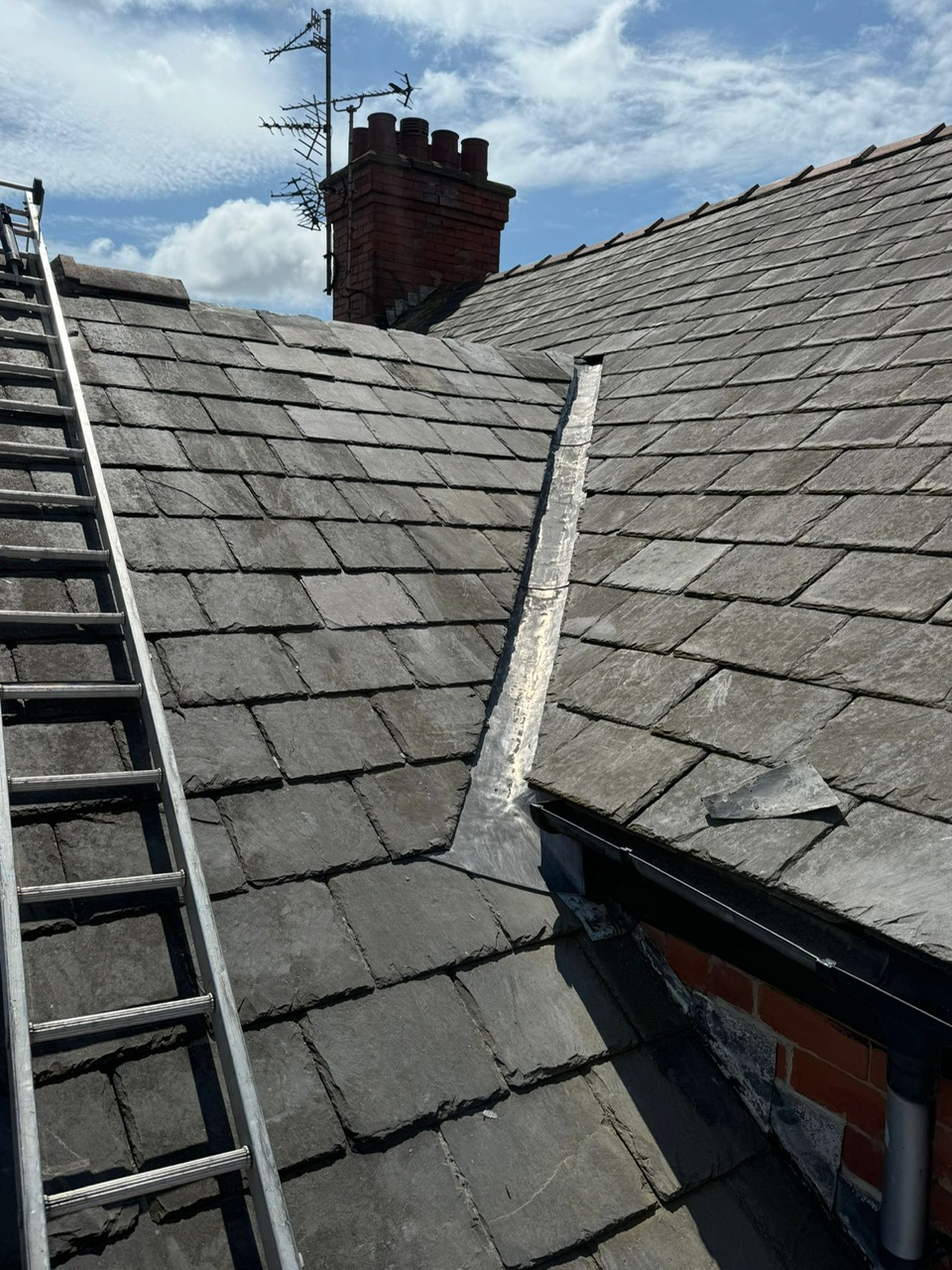 Small repair job today over in ribchester where the felt had failed at the eaves, solution was to take felt and battens off , new eaves support trays and breathable felt, then tile back with the old tiles and point valley!